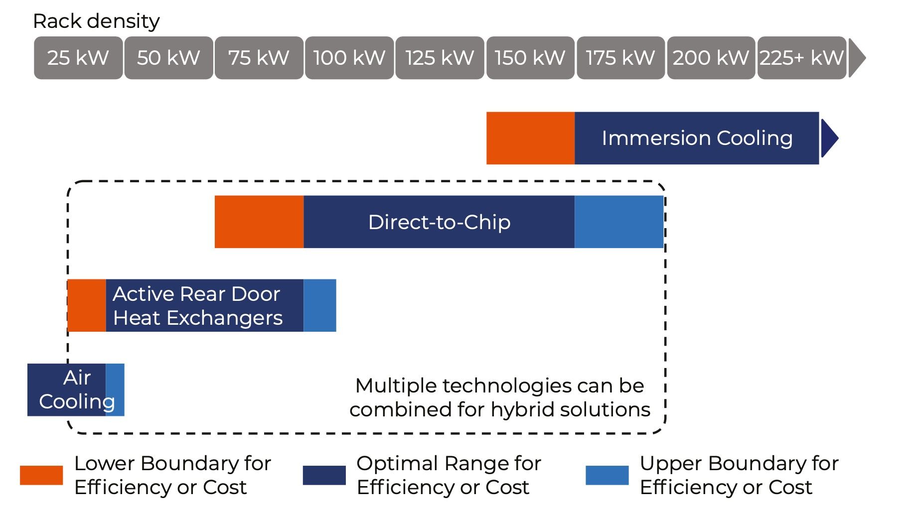 Applicable Cooling Technologies by Rack Density